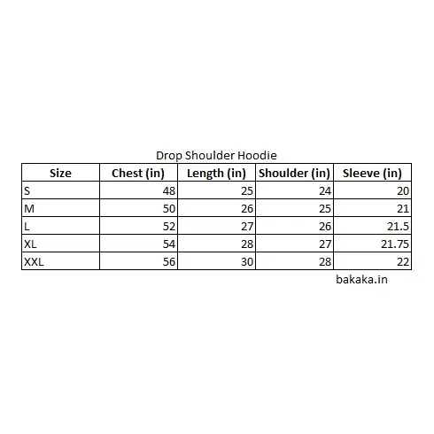 Sizing: Garment measurement in inches.